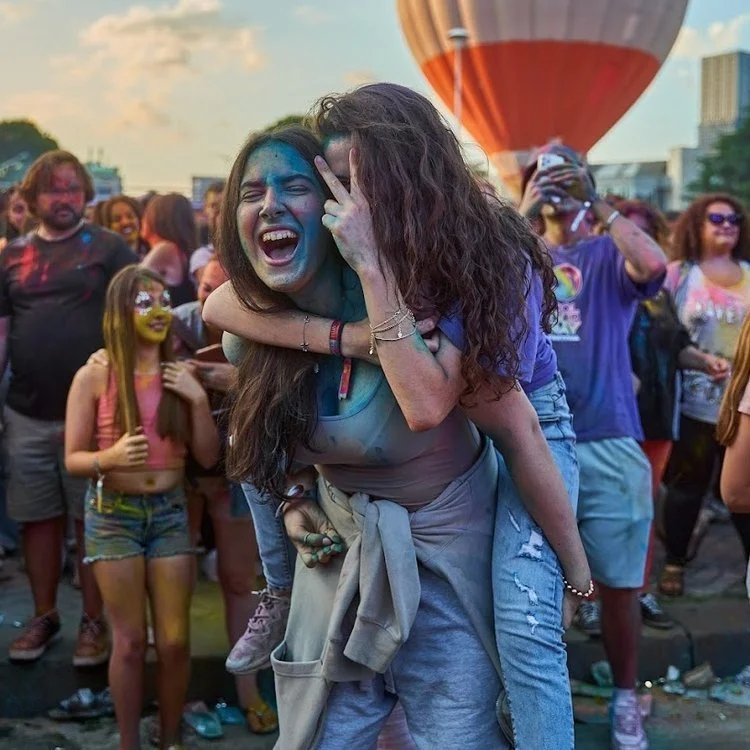 A full-on joy explosion—music, dancing, and colored powder everywhere. It’s high energy and easy to join, whether you plan it or stumble upon it.