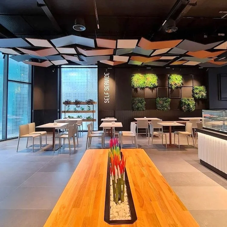 More of a self-serve restaurant than a café, but very laptop-friendly. The design is modern, the vibe is chill, and the food is affordable and surprisingly good.